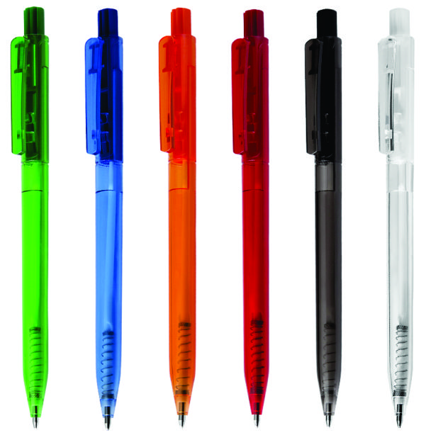 Caneta plástica esferográfica retrátil escrita em azul