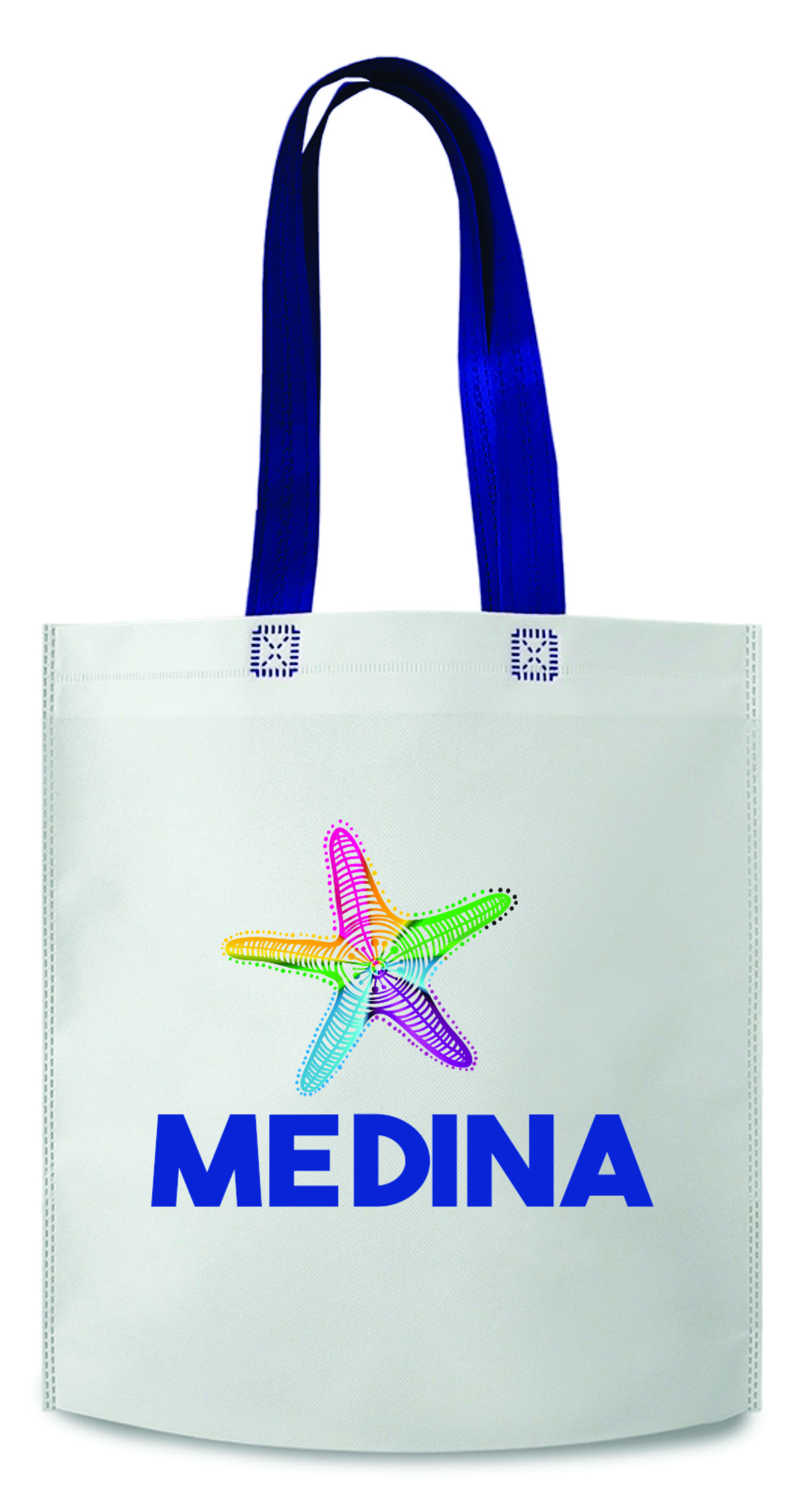 Sacola confeccionada em TNT biodegradável com estrutura termosselada que oferece maior resistência e segurança durante o uso.
